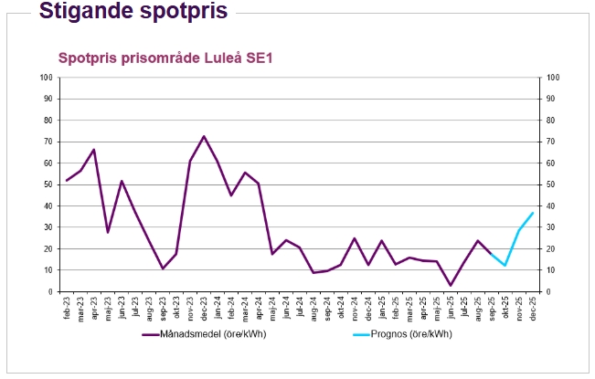För november väntas spotpriserna stiga i samtliga svenska elområden. Den högre prisnivån drivs framför allt av att höstens kyligare dagar och mörkare kvällar gradvis ökar elförbrukningen.
