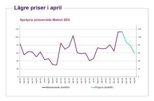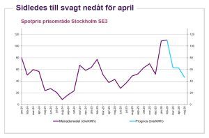 Mars har hittills haft ett lägre genomsnittligt spotpris i samtliga svenska elområden jämfört med årets två första månader. Den största prisnedgången har skett i norra Sverige, främst till följd av ökad vindkraftsproduktion i kombination med mildare väder. I de södra elområdena har vindkraftsproduktionen inte ökat lika mycket, men högre temperaturer jämfört med februari samt längre och ljusare dagar har bidragit till lägre efterfrågan.