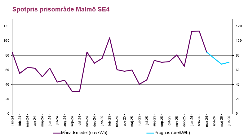 I södra Sverige har priserna i stället sjunkit något. Det beror främst på en minskad elförbrukning i kombination med något lägre prisnivåer på kontinenten, där ökad produktion från förnybara kraftslag har haft en dämpande effekt.
